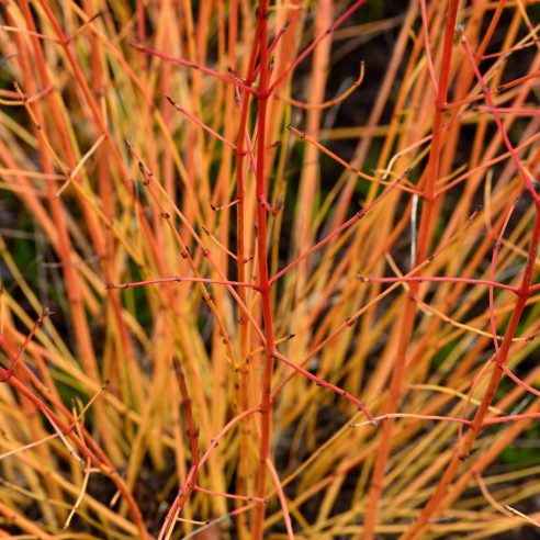 Deciduous shrub grown for winter stem colour. Prune out weak or crossing shoots. Any soil especially wet soils in sun or part shade. Height 1½m.
