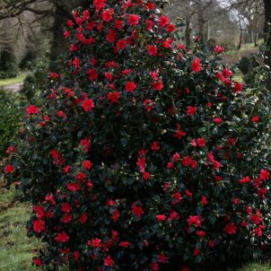 Evergreen shrub bearing masses of pale-yellow fragrant pea flowers in April and often throughout the year. Well drained soil in full sun. Height 1m.