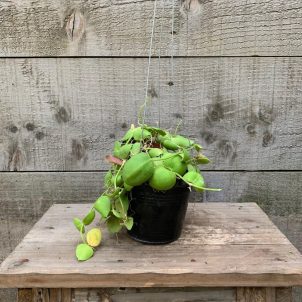 An unusual succulent with fleshy, circular leaves 'pierced' by a thin central stem. The lax habit makes it ideal for use in a hanging basket. Place in a sunny spot in the house or conservatory and allow compost to dry in between waterings. Over winter frost free and keep dry.