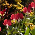 (Lamprocapnos spectabilis 'Valentine') Bleeding Heart. A new variety bred in Canada which resembles D spectabilis in every way except colour. This form has heart-shaped flowers in a beautiful shade of coral red carried along arching stems from March to June. Ferny foliage. Good soil in semi-shade. Height 60cm.