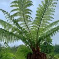 These plants produced in Cornwall. Primitive species of architectural value. Slow growing to 3m+. Brown fibrous trunk. Best in a cool shady sheltered position. Small plants need nurturing until large enough to plant out. Wrap in severe weather until established.