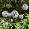 Globe Thistle. Round heads of steely-blue flowers from July to September. Handsome, jagged grey-green foliage. Any soil in full sun. Height 1½-2m.