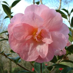 Erect deciduous shrub. Yellow to bronze, cup shaped flowers lasting well. Autumn colour, from red to yellow is outstanding. Acid soil in sun or shade. Height 2m.