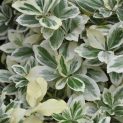 Evergreen shrub with striking, densely branched, white variegated foliage. Good coastal plant. Any soil in sun or shade. Height 2m. HARMFUL IF EATEN.