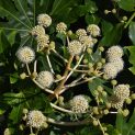 Large evergreen shrub with architectural foliage, bearing panicles of white globular flowerheads in October. Good coastal plant. Any soil in sun or shade. Also grown as a houseplant where it will survive until it outgrows its position and can then be planted in the garden. Height 2-3m. Locally grown in peat free compost.