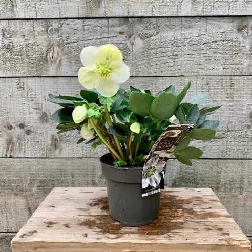 Christmas Rose. White flowers fading to pink from December to March. Fertile soil in sun or part shade. Height 30cm Spread 45cm. HARMFUL IF EATEN