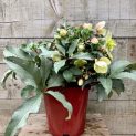 A very unusual hellebore with striking silvery-blue evergreen foliage. Clusters of large pink-green flushed white flowers from December to May. Any soil in sun or part shade. Height 40cm. HARMFUL IF EATEN