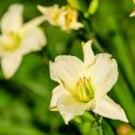 Daylily. Ivory white flowers with a green throat in June and July. Strappy green foliage. Divide and replant when flowering declines. Moist soil in sun or part shade. Height between 60-90cm.