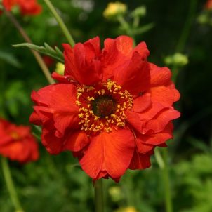 The deeply cut foliage in spring to mid summer is gold with red veins. In late summer, the leaves turn green with red veins. In autumn, the older foliage turns amber-pink. Small white flowers April-July. Height 9 inches. Grow in full sun in well drained soil. Will benefit from winter protection.