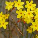 Winter Jasmine. Bright yellow flowers adorn the green stems from December to February. Fertile soil in sun. Height 2-3m.