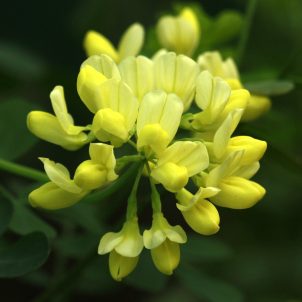 Dwarf sub-shrub with silvery-grey hairy foliage and pink-tinged white pea flowers in late summer/autumn. Full sun in well drained soil. Height 45cm. Spread 1.2m.
