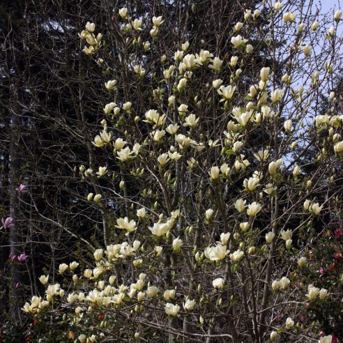 (Yellow River) 'Flying Yellow'. Yellow flowered magnolia discovered in and imported from China. Medium sized, light yellow flowers in April-May. Grow in good, organically rich soil in sun or part shade. Height: 7-10m.