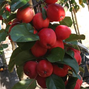 Flowering Crab Apple. Small deciduous tree. Flowers pink in bud opening to white. Yellow fruits in autumn. Any soil in sun or shade. Height 3-5m.
