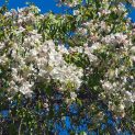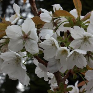 Small deciduous semi-weeping tree.Small pink & white flowers red cherry fruits. Any fertile soil sun or partial shade. Height 8-10 ft.