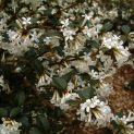 Slow growing evergreen. Dark foliage with finely toothed leaves. White, very fragrant flowers in spring. Any good soil in sun or part shade. Height and spread 2m.