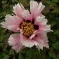 Tree Paeony. Large deciduous shrub bearing large showy flowers in May. Best in an open but sheltered site in full sun. Any well drained soil, including alkaline. Height 2m.