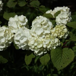 Deciduous shrub. Foliage colour is red suffused with gold. White flowers in dense clusters in June. Best in deep moist soil in sun or part shade. Height 1-1½m.
