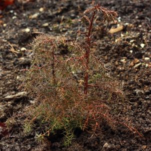 Makes a low mound of arching shoots. Green summer foliage turns purplish brown in winter. New shoot tips in spring and early summer bright pink. Male. Grow in well drained soil in sun or part shade. 10 year height & spread: 50 cm x 1.2m.
