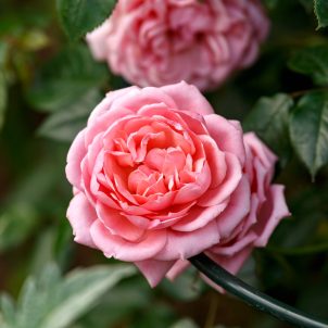 Hybrid Tea. The large pink flowers are strongly scented and borne on long stems ideal for cutting. Height 90cm.