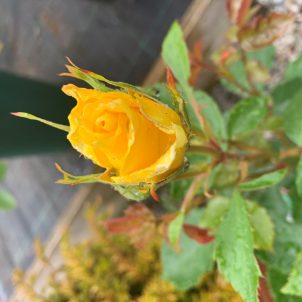 Hybrid Tea. A neat compact rose ideal for the smaller garden with ruby-red fragrant flowers. Height 60cm.
