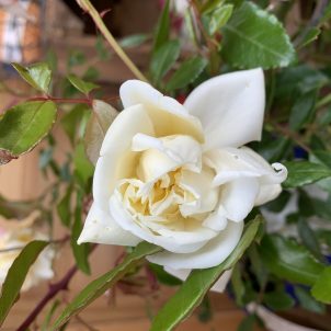 A floribunda that looks like a H.T. Strongly scented flowers are yellow with red edging making a fine display. Height 90cm.