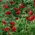 Mountain Ash/Rowan. Familiar native deciduous tree. Pinnate leaves. Huge bunches of glossy red fruits in autumn. Autumn foliage colour. Any soil in sun or shade. Height 5-8m.