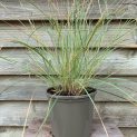 Giant Feather Grass. Slender arching grey-green evergreen leaves form large clumps, 45cm high. Flower spikes up to 2m tall carry strawy yellow airy flower plumes. Well drained soil in full sun.
