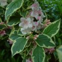Deciduous. One of the best variegated foliage shrubs. Pink tubular flowers in May and June. Any soil in sun or shade. Prune out old flowering wood to keep tidy. Height 2m.
